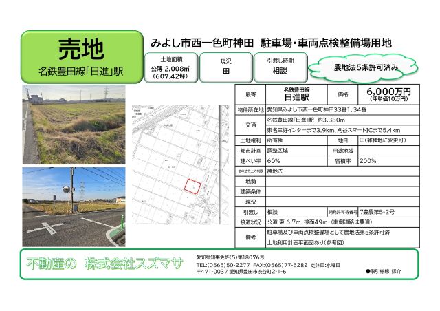 駐車場及び車両点検整備場として農地法許可済み